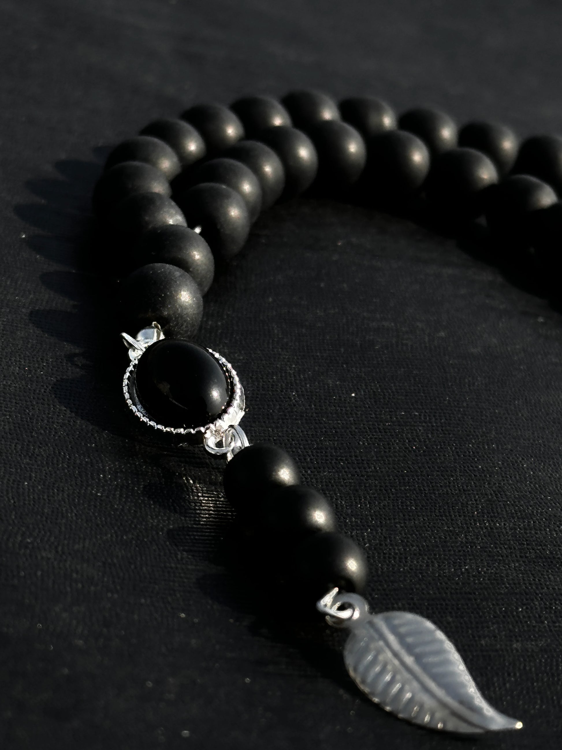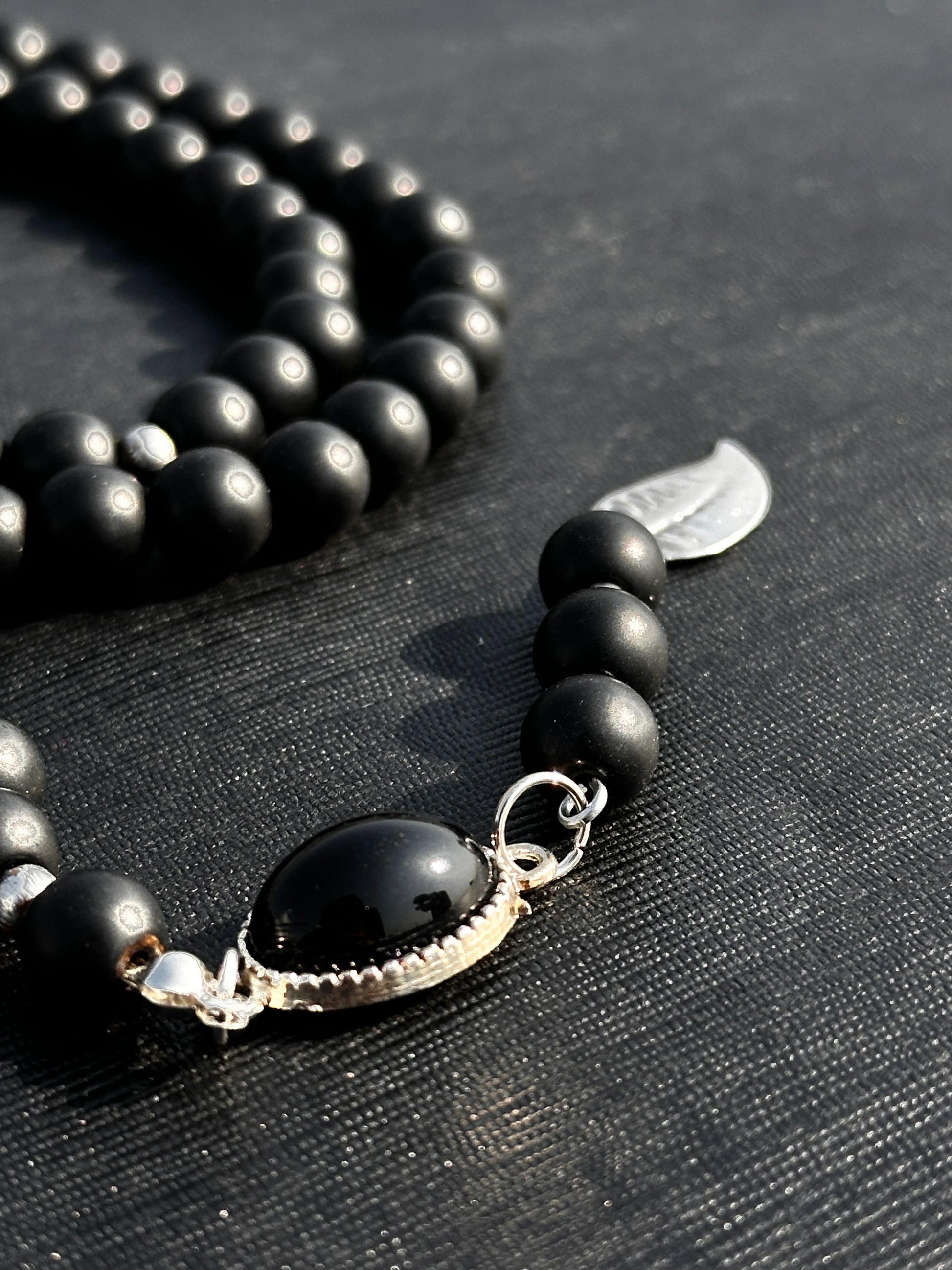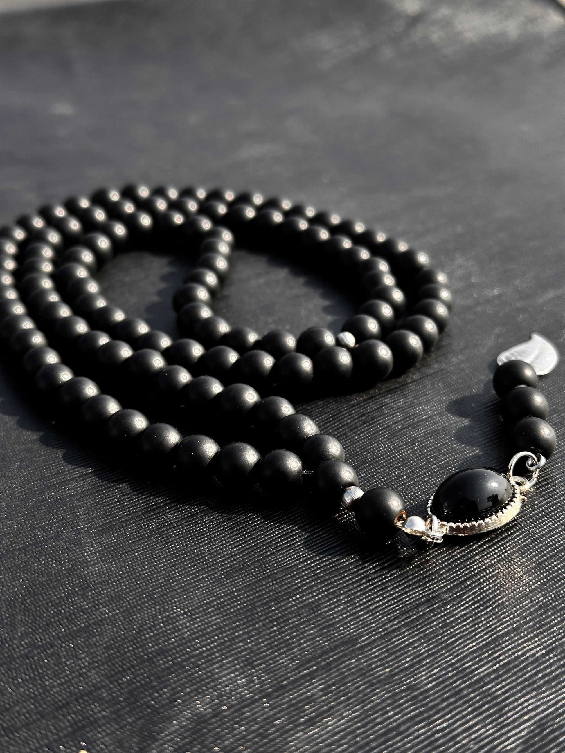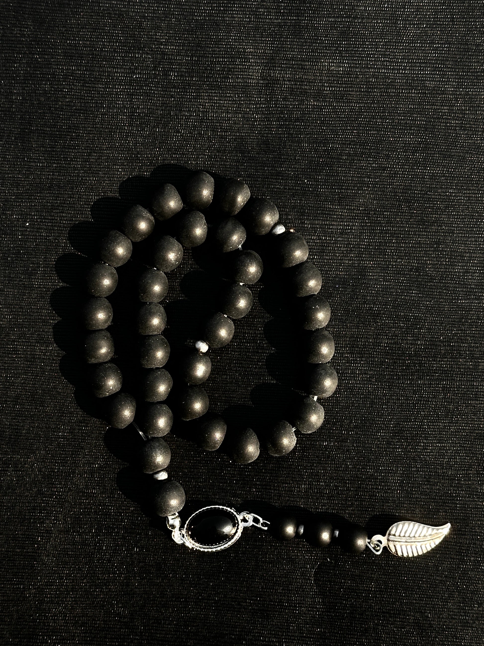 Material: Matte Black Beads with Real Black Aqeeq Stone